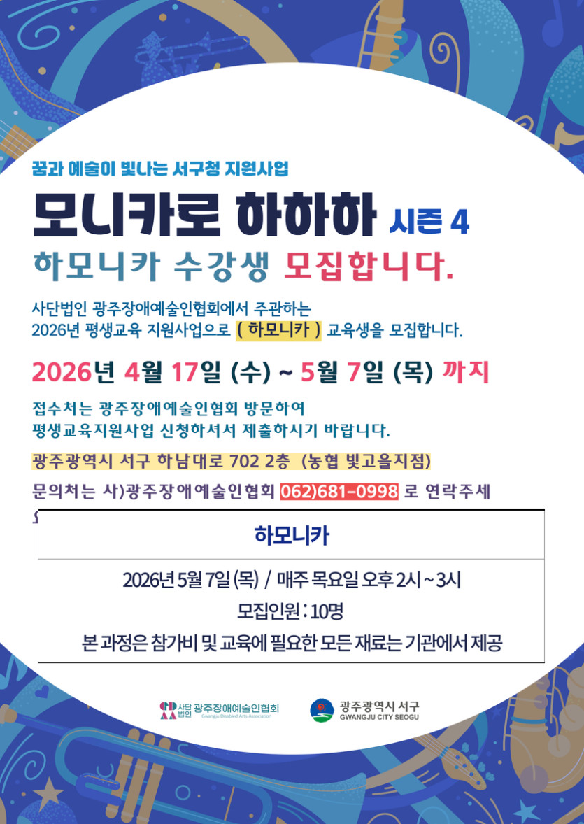 주소 : 광주광역시 서구 하남대로 702 2층 광주장애예술인협회 사무국