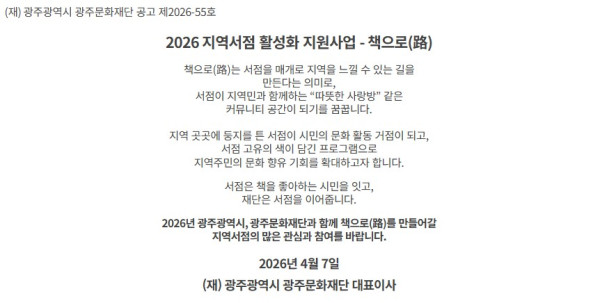 [광주문화재단] 2026 지역서점 활성화 지원사업“책으로(路)” 운영서점 모집