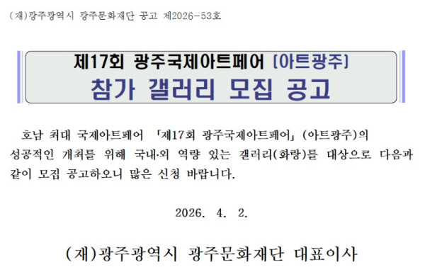 [광주문화재단] 2026 광주국제아트페어(아트광주) 참가 갤러리 모집 공고