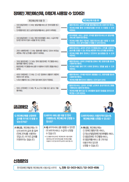 [한국장애인개발원] 2026년도 장애인 개인예산제 시범사업 참여자 모집 공고 페이지 정보 작성자최고관리자 조회 62회 작성일 2026-02-04 10:20:15 댓글 0 list_alt목록 본문 2026년도 장애인 개인예산제 시범사업 참여자 모집 공고 관련링크 https://www.koddi.or.kr/bbs/notice01_view.jsp?brdNum=7428075&brdTp=&se… 20회 연결 https://qr1.me-qr.com/ko/text/td05obuw 19회 연결 이전글 2026년 제5회 에이프캠프(APE CAMP) 국내 참여자 오픈콜 다음글2026년 인증운영기관 「장애물 없는 생활환경(BF) 인증」 통합 인증 심사전문인력 모집 사전 안내 공고 arrow_back arrow_forward list_alt 댓글 0 등록된 댓글이 없습니다.