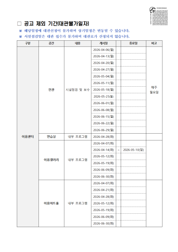 2026년 장애인문화예술센터 '이음' 2분기(4~6월) 정기대관 공고 > 뉴스레터