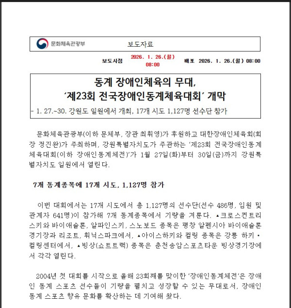 [문화체육관광부] 동계 장애인체육의 무대, ‘제23회 전국장애인동계체육대회’ 개막
