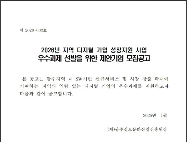 [광주정보문화산업진흥원] 2026년 지역 디지털 기업 성장지원 사업 신규 과제 모집 공고