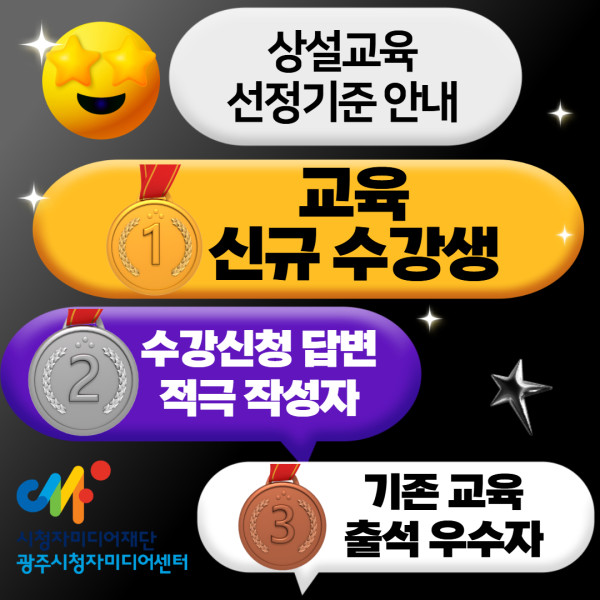 ○ 신청방법: 시청자미디어재단 광주시청자미디어센터 홈페이지 (광주센터 → 수강신청 → 열릴강좌 확인)