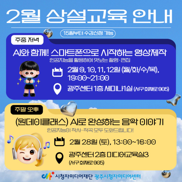 [광주시청미디어센터] 2월 상설미디어교육 안내