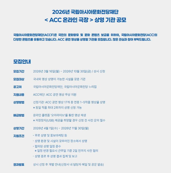 [아시아문화전당] 2026년 국립아시아문화전당재단 <ACC 온라인 극장> 상영 기관 공모