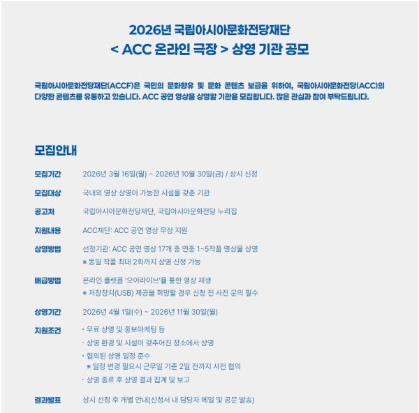 [아시아문화전당] 2026년 국립아시아문화전당재단 <ACC 온라인 극장> 상영 기관 공모